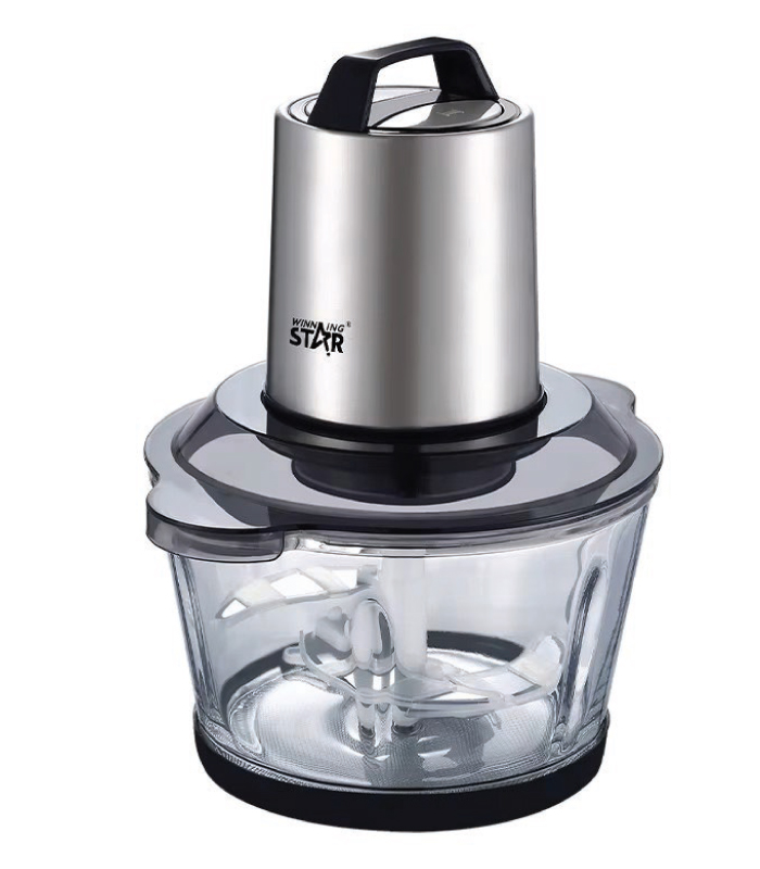 Food Processor ST-5508 with a 250W pure copper motor, 2L high borosilicate glass bowl, and 304 stainless steel blades — durable, safe, and perfect for everyday meal prep.